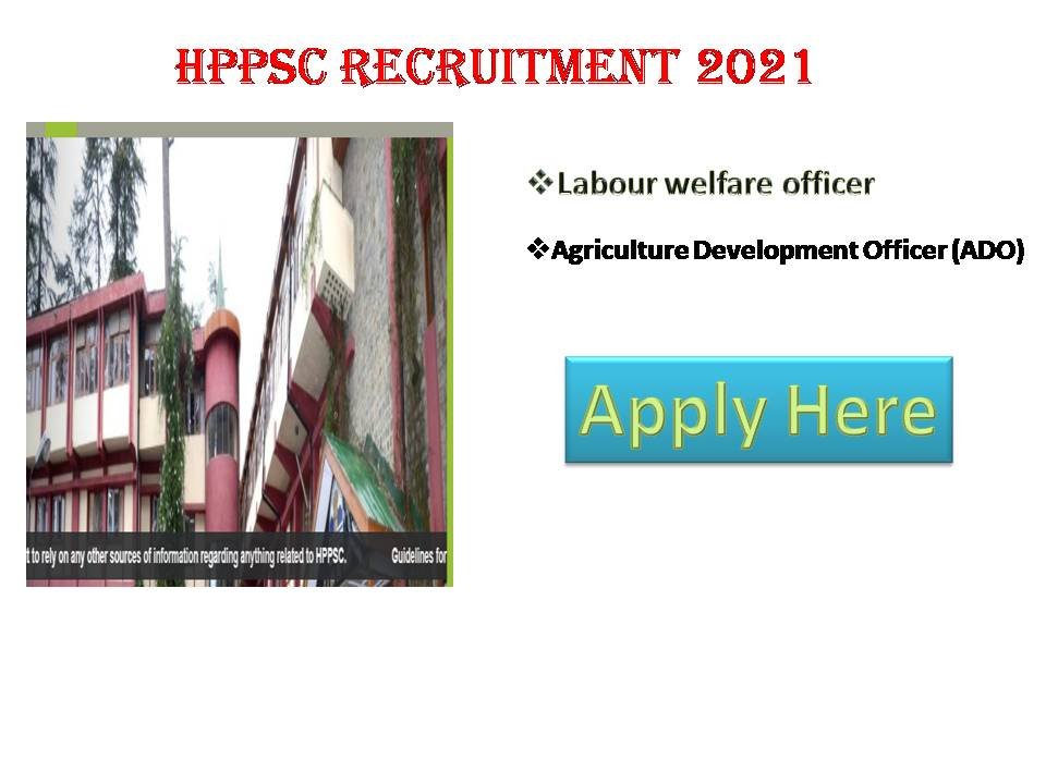 HPPSC RECRUITMENT 2021 Himachal Pradesh public services commission Labour welfare officerAgriculture Development Officer