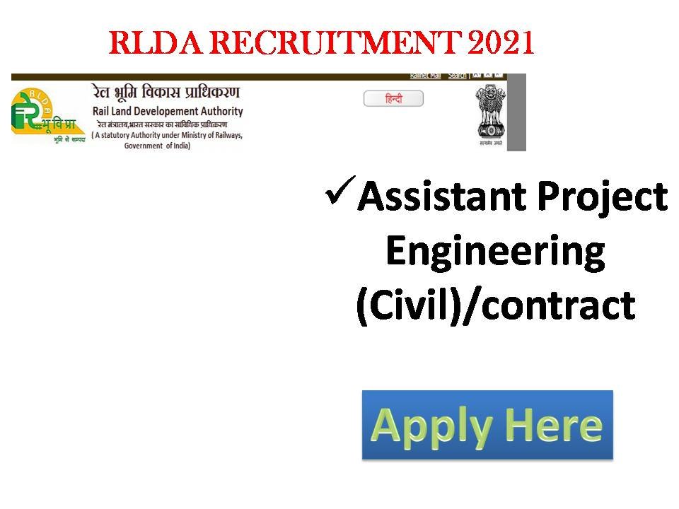 RLDA RECRUITMENT 2021. RAIL LAND DEVELOPMENT AUTHORITYAssistant Project Engineering (Civil)/contract RLDA Recruitment jobs